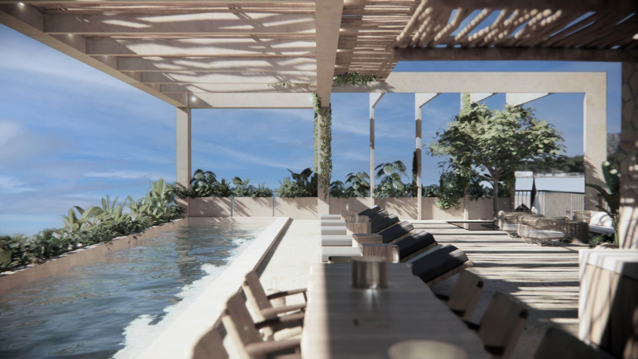 ALMA Bucerías is an exclusive development of 39 pre-sale condominiums, located in the Golden Zone of Bucerías, Nayarit, just 150 meters from the beach with partial views of the sea. This project by Grupo Inmobiliario de la Costa AP offers units of different sizes, from cozy 2-bedroom apartments to spacious 3-bedroom Penthouse and Garden House. Bucerias, known for its golden sand beaches, crystal clear waters and tranquil atmosphere, is a charming coastal town full of local culture, galleries, restaurants and Mexican hospitality. Its strategic location provides easy access to the beach, hospitals, supermarkets and is just 20 minutes from the airport, offering comfort and a privileged lifestyle in a natural and authentic environment.